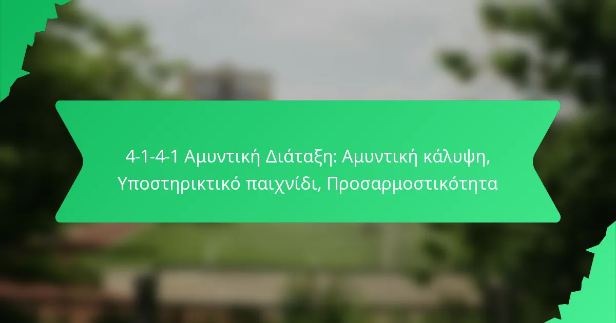 Η αμυντική διάταξη 4-1-4-1 είναι μια τακτική προσέγγιση στο ποδόσφαιρο που δίνει προτεραιότητα σε ένα σταθερό αμυντικό πλαίσιο ενώ διευκολύνει γρήγορες αντεπίθεσεις. Με τη στρατηγική τοποθέτηση των παικτών, αυτή η διάταξη εξασφαλίζει ισχυρή αμυντική κάλυψη και προσαρμοστικότητα, καθιστώντας δύσκολη την παραβίαση της άμυνας από τους αντιπάλους. Επιπλέον, η υποστηρικτική δράση μέσα σε αυτή τη διάταξη ενισχύει την κυκλοφορία της μπάλας και δημιουργεί ευκαιρίες για επιθετικές ενέργειες.