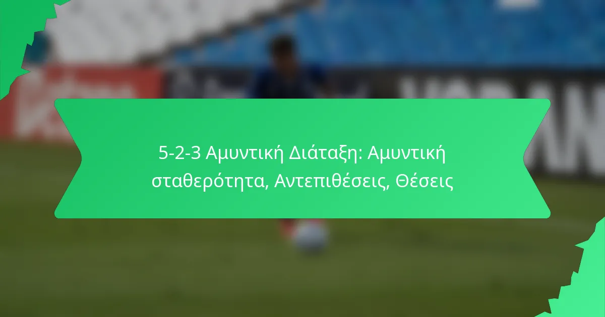 Η αμυντική διάταξη 5-2-3 είναι μια τακτική προσέγγιση στο ποδόσφαιρο που συνδυάζει την αμυντική σταθερότητα με την πιθανότητα για γρήγορες αντεπίθεσεις. Χρησιμοποιώντας πέντε αμυντικούς και δύο μέσους, αυτή η διάταξη δημιουργεί μια ισχυρή αμυντική γραμμή ενώ επιτρέπει σε τρεις επιθετικούς να εκμεταλλεύονται ευκαιρίες στην επιθετική πλευρά. Αυτή η στρατηγική διάταξη επιτρέπει στις ομάδες να απορροφούν την πίεση αποτελεσματικά και να μεταβαίνουν γρήγορα, καθιστώντας την ιδανική επιλογή για την ισορροπία άμυνας και επίθεσης.