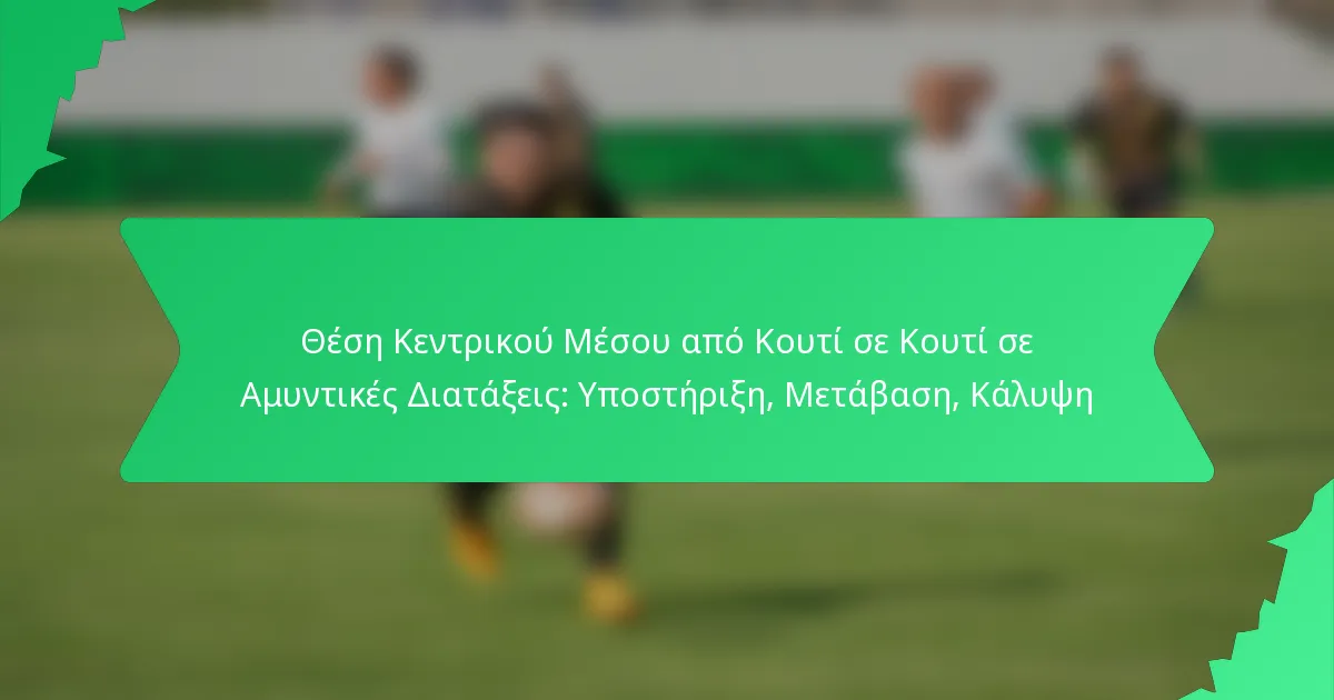 Ένας μέσος που κινείται από περιοχή σε περιοχή παίζει κρίσιμο ρόλο στην υποστήριξη των αμυντικών σχηματισμών παρέχοντας κάλυψη, εμπλέκοντας σε τάκλιν και διευκολύνοντας τις μεταβάσεις μεταξύ άμυνας και επίθεσης. Η τοποθέτησή τους και η αντίληψη τους βοηθούν να μπλοκάρουν διαδρόμους πάσας και να επιστρέφουν για να υποστηρίξουν τους αμυντικούς, διασφαλίζοντας μια συνεκτική μονάδα στο γήπεδο.