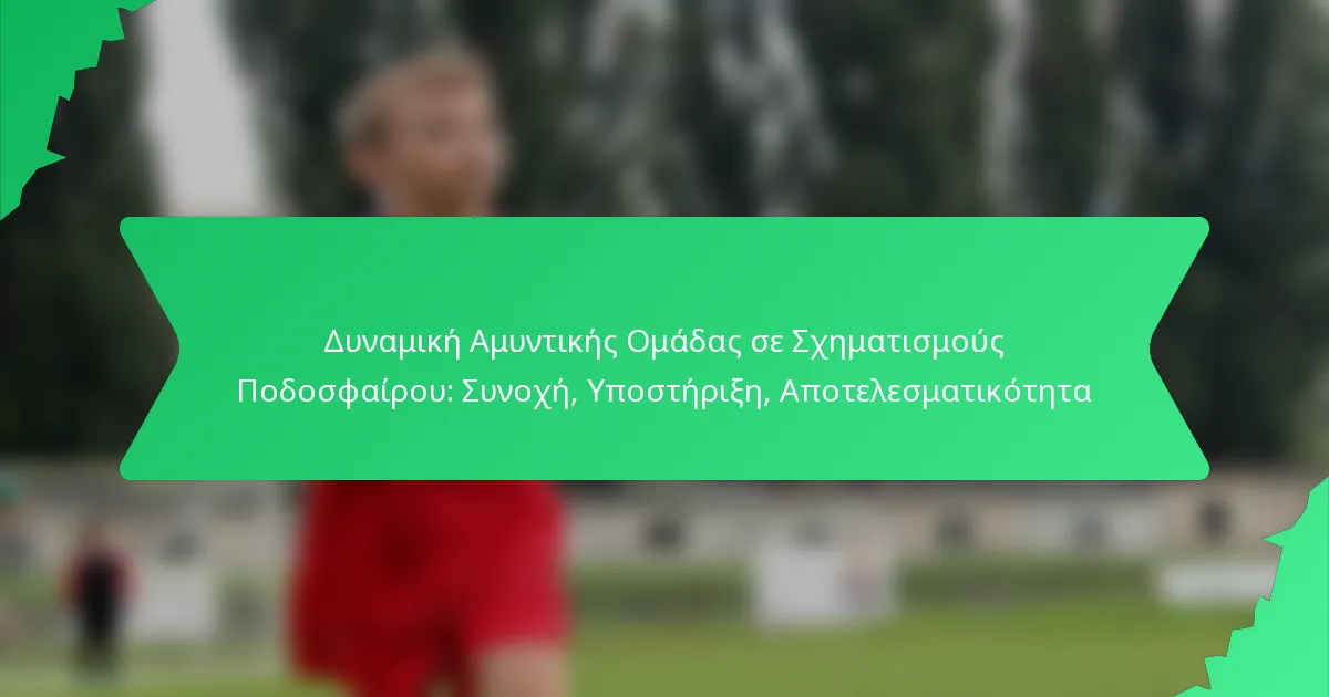 Οι αμυντικές δυναμικές της ομάδας στις ποδοσφαιρικές σχηματισμούς παίζουν ζωτικό ρόλο στο πώς οι παίκτες αλληλεπιδρούν και συνεργάζονται για να διατηρήσουν μια ισχυρή άμυνα. Κύρια στοιχεία όπως η συνοχή, οι μηχανισμοί υποστήριξης και η συνολική αποτελεσματικότητα είναι απαραίτητα για την ικανότητα μιας ομάδας να αντέχει στην επιθετική πίεση. Η επιλογή σχηματισμού μπορεί να επηρεάσει σημαντικά αυτές τις δυναμικές, επηρεάζοντας τη θέση των παικτών και τη συλλογική αμυντική στρατηγική. Εστιάζοντας στην ομαδική εργασία και την επικοινωνία, οι ομάδες μπορούν να ενισχύσουν τις αμυντικές τους ικανότητες και να επιτύχουν μεγαλύτερη επιτυχία στον αγωνιστικό χώρο.